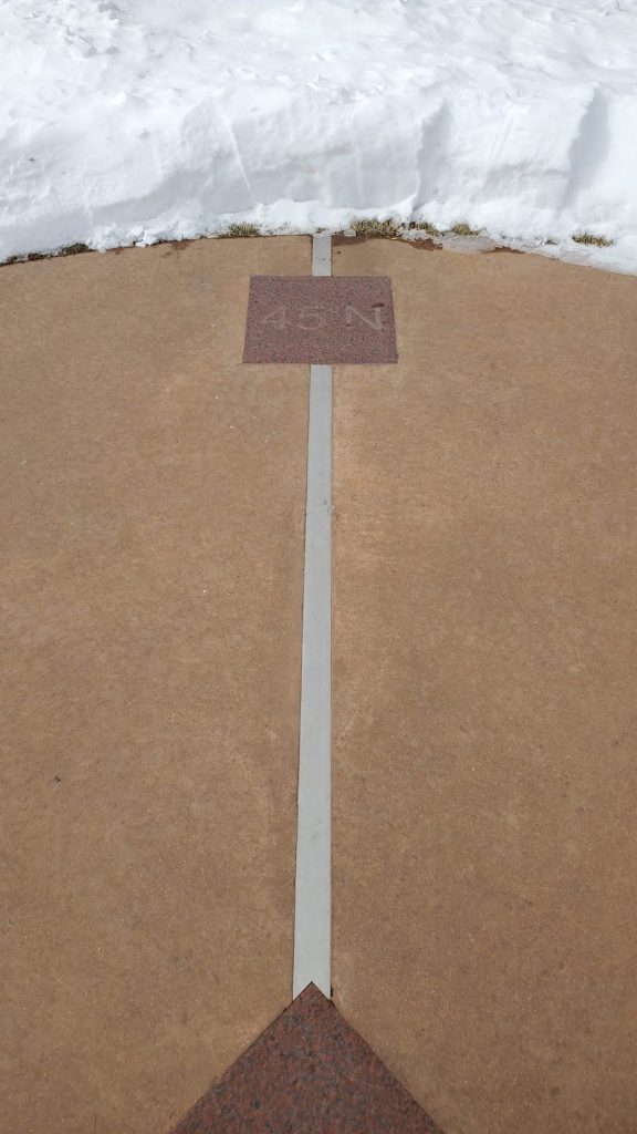 Standing at 45° north means you’re exactly halfway between the Equator and the North Pole. At 90° west, you’re a quarter of the way around the Earth from the Prime Meridian in Greenwich, England. Put those together, and you’re standing in one of only four 45–90 points on the entire planet.