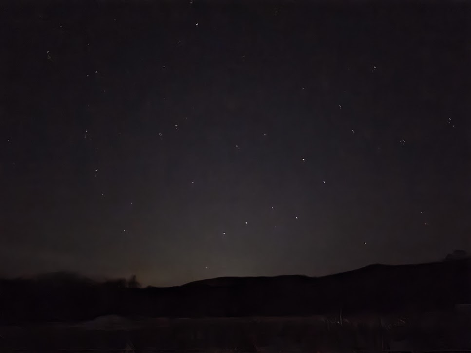 Above the ridge, the stars are clear. The Big Dipper is tilted, leaning into winter the way it does only just before the solstice.